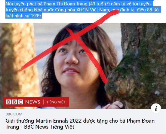 Đám hề dân chủ trong nước đang tỏ vẻ khoái trá khi hôm qua BBC thông tin Phạm Thị Đoan Trang nhận được cái gọi là “giải thưởng nhân quyền Martin Ennals” từ Thụy Sỹ.BBC loan báo: “Bà Phạm Đoan Trang, bị Việt Nam tuyên án 9 năm tù hồi tháng 12, vừa được một tổ chức ở Geneva trao giải nhân quyền. Mỗi người được giải này sẽ được tặng tiền thưởng từ 20.000-30.000 franc Thụy Sĩ” và rằng, “tầm quan trọng của Giải thưởng này không chỉ là tài chính, mà có thể góp phần bảo vệ họ thông qua sự ủng hộ của các nhân vật nổi tiếng trên thế giới”.