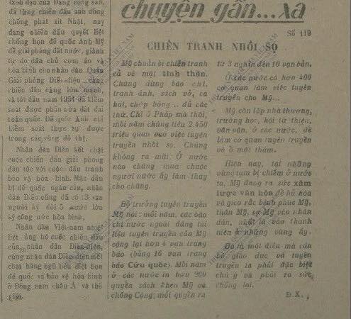 Bộ trưởng tuyên truyền Mỹ nói: mỗi năm, các báo chí nước ngoài đăng tài liệu tuyên truyền của Mỹ cộng lại hơn 4 vạn trang báo (bằng 16 vạn trang báo Cứu quốc). Mỗi năm ở các nước in hơn 200 quyển sách khen Mỹ và chống cộng, mỗi quyển ra từ 3 nghìn đến 10 vạn bản. Ở các nước có hơn 400 cơ quan làm việc tuyên truyền cho Mỹ…