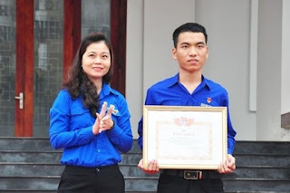 Anh Tròn (bên phải) nhận bằng khen của Tỉnh đoàn Quảng Nam