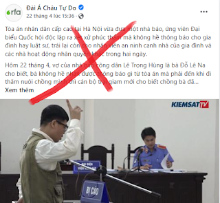 Hôm 22/4/2022, Đài Á Châu Tự Do  thông tin “Tòa án nhân dân cấp cao tại Hà Nội vừa đưa một nhà báo, ứng viên Đại biểu Quốc hội độc lập ra xét xử phúc thẩm mà không hề thông báo cho gia đình hay luật sư, trái lại còn cho nhân viên an ninh canh nhà của gia đình và các nhà hoạt động nhân quyền khác trong hai ngày”.