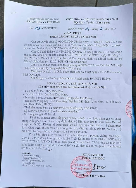 3. UBND Thành phố Hà Nội nên yêu cầu Sở Văn hóa, Thể thao giải trình về nội dung, quy trình thẩm định, cấp phép triển lãm cho Mai Duy Minh”.