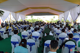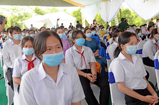 Các thành viên Đoàn đại biểu cấp cao của Chính phủ Việt Nam tại cuộc gặp và nói chuyện với nhân dân địa phương của Thủ tướng Hun Sen. Ảnh: Xuân Cường