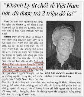 Hình ảnh bài báo mà tổ chức khủng bố Việt Tân đăng tải dưới đây là một ví dụ nhỏ xinh về bản chất của ca sỹ Khánh Ly dành cho anh thợ dạy Vũ Khắc Ngọc.