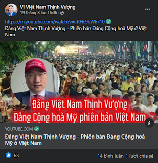 Khoảng 1 tháng nay, một người có tên Phan Sơn Tùng, chủ kênh Youtube “Vì Việt Nam Thịnh Vượng” liên tục công khai bày tỏ việc anh ta sẽ thành lập một tổ chức chính trị mang tên “Đảng Việt Nam Thịnh Vượng”.Để phục vụ cho việc thành lập “Đảng Việt Nam Thịnh Vượng”, Phan Sơn Tùng liên tục sử dụng Fanpage và kênh Youtube của mình đăng tải các bài viết để xin góp ý về cái gọi là “Cương lĩnh của đảng”, thảo luận về việc thành lập đảng và quảng cáo bán mũ lưỡi trai in chữ “Vì Việt Nam Thịnh Vượng”.