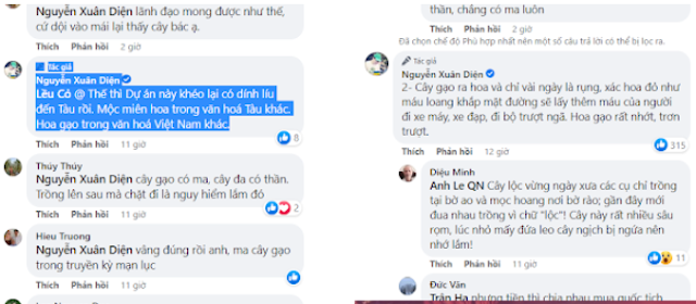“Cây gạo ra hoa và chỉ vài ngày là rụng, xác hoa đỏ như máu loang khắp mặt đường sẽ lấy thêm máu của người đi xe máy, xe đạp, đi bộ trượt ngã. Hoa gạo rất nhớt, trơn trượt.” – Xem ảnh chụp màn hình phía trên.