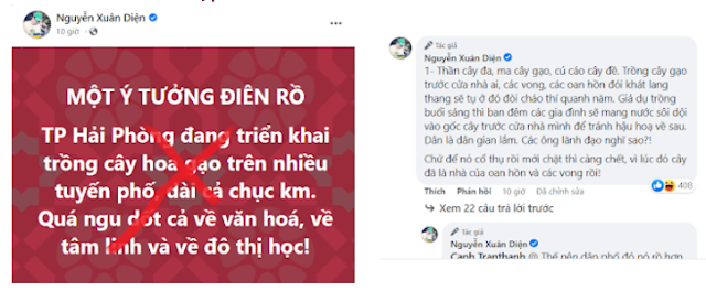 Đọc toàn bộ status kèm những bình luận mà TS Nguyễn Xuân Diện cho phép tồn tại tên Facebook cá nhân của anh ta, tôi thấy đây là status được viết ra không phải để phản biện chủ trương của TP Hải Phòng, mà để truyền bá mê tín dị đoan, nhục mạ người dân và các lãnh đạo TP Hải Phòng. Sự tương tác của TS Nguyễn Xuân Diện cũng gợi mở, dung dưỡng cho đám chống phá nhà nước vào chửi bới chế độ.