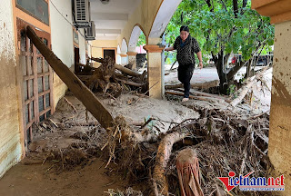 Bùn đất, cây cối ngập nửa dãy nhà trong Trung tâm chính trị huyện Kỳ Sơn