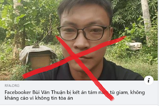 Tôi trích một đoạn trong bài viết mới nhất của Đài Á Châu Tự Do: “Toà án Nhân dân tỉnh Thanh Hoá trưa 18/11 tuyên án tám năm tù giam và năm năm quản chế đối với ông Bùi Văn Thuận về tội danh “phát tán tài liệu nhằm chống nhà nước” theo Điều 117 của Bộ luật Hình sự, trước đó ông tuyên bố từ bỏ quyền kháng cáo. Trong lời phát biểu cuối cùng trước khi Hội đồng xét xử nghị án, Facebooker Bùi Văn Thuận khẳng định mình vô tội và tuyên bố không sử dụng quyền kháng cáo vì không tin tưởng vào hệ thống xét xử của Việt Nam hiện nay.” – Hết trích.