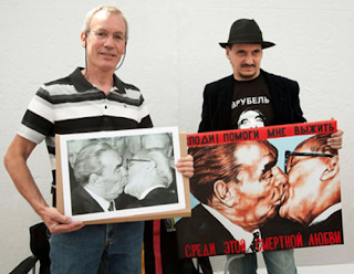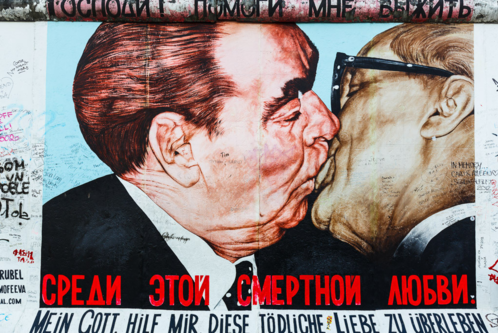 Sau khi Bức tường Berlin sụp đổ vào năm 1989, một phần của nó trở thành triển lãm nghệ thuật ngoài trời. Những bức tranh tường và graffiti nhanh chóng xuất hiện vào năm 1990, trong đó Dmitri Vrubel quyết định tái hiện kiệt tác của Regis Bossu 11 năm sau khi ảnh gốc ra đời. Vrubel tình cờ gặp bức ảnh “Nụ hôn” trong một tiệm bán đồ cũ ở Paris và dùng nó làm hình mẫu của mình, theo Stripes.