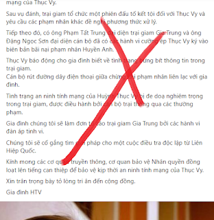 Thật ra, chúng ta đã quá quen với điều này, nên hiểu rõ ràng rằng, Huỳnh Thục Vy có kêu có la thì đám dzân chủ cuội trong nước và đám Giám sát Nhân quyền quốc tế Human Rights Watch (HRW) và Á Châu tự do RFA mới có cớ để ẳng lên rằng, “tù nhân lương tâm Huỳnh Thục Vy tố cáo việc bị cán bộ Trại Gia Trung đánh, bóp cổ”.