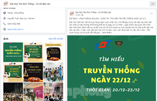 Theo thông tin PV có được, ngày 20/11, trên fanpage Đại học Tôn Đức Thắng- Cơ sở Bảo Lộc đăng thông tin quảng bá về cuộc thi online tìm hiểu Ngày thành lập Quân đội nhân dân Việt Nam 22/12.