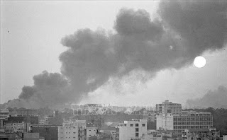 Khói bốc lên trên bầu trời Sài Gòn trong đợt 1 cuộc Tổng tiến công, rạng sáng 8/2/1968. Ảnh: Tư liệu quốc tế/TTXVN phát