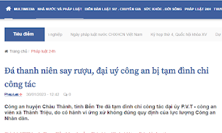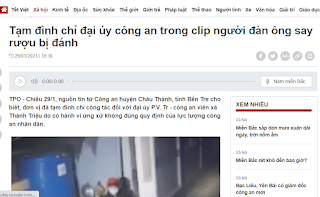 Anh đại úy công an trong clip đánh người bị khống chế trên mạng đã bị công anh huyện Châu Thành, tỉnh Bến Tre tạm đình chỉ công tác để xác minh làm rõ vụ việc. Chưa biết anh đại úy sẽ bị xử lý ở mức độ thế nào, nhưng trước mắt việc đánh người là sai và việc tạm đình chỉ công tác là đúng quy định. Tuy nhiên, trong vụ này, với tư cách là một độc giả, thôi thấy một số bài báo có cách đặt tiêu đề chưa chính xác, dễ dẫn đến hiểu lầm bản chất vụ việc.