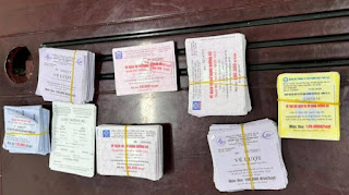 2 đối tượng có hành vi mua bán tem vé giả cước phí đường bộ và 1 chủ cửa hàng photocopy ở Thanh Trì đã bị bắt giữ.