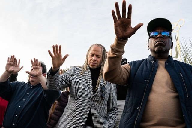 Các giáo sĩ địa phương tụ tập trong một buổi cầu nguyện gần hiện trường vụ xả súng ở Monterey Park, California ngày 22/1. Ảnh: USA Today.
