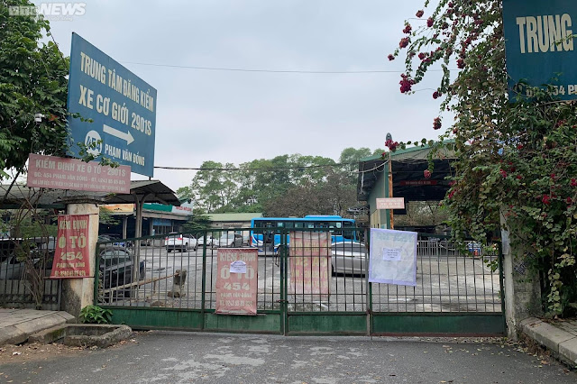 Trung tâm đăng kiểm xe cơ giới 2901S (Số 454 Phạm Văn Đồng, quận Bắc Từ Liêm, TP Hà Nội) đang tạm dừng hoạt động để phục vụ công tác điều tra. (Ảnh: Ngô Nhung).
