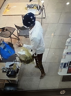 Hình ảnh cắt clip đối tượng cướp tài sản tại cửa hàng Thế giới di động