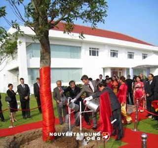Hình ảnh Hoàng thái tử Henrik của Đan Mạch trồng cây lưu niệm tại nhà máy bia Mê Linh, Hà nội năm 2009
