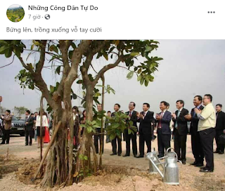 Chiều nay 27/2/2023, trang mạng của đám giẻ rách có tên “Những Công Dân Tự Do” đăng tải một status có tựa “Bứng lên, trồng xuống vỗ tay cười” kèm theo một bức ảnh nhiều người đang vỗ tay sau khi trồng xong một cây đa. Status này khơi mào cho đám bất lương, ngu học vào bình luận, chửi bới chế độ.