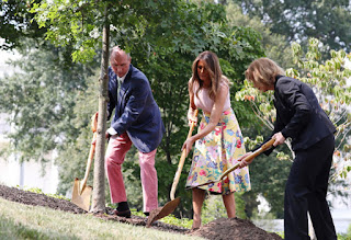 Phu nhân Tổng thống Mỹ Donald Trump trồng cây và dĩ nhiên là bứng lên, trồng xuống rồi vỗ tay.