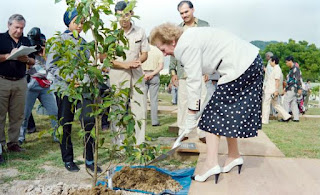 Không hề kém cạnh, bà Thủ tướng nước Anh Thatcher cũng trình diễn việc trồng cây để mong ngày mai tươi sáng hơn hôm qua.