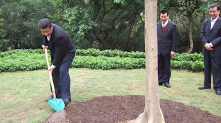 Tại Trung Quốc, việc trồng cây cũng được quan tâm nhằm khuyến khích người dân bảo vệ môi trường. Trong ảnh là Chủ tịch Trung Quốc Tập cận Bình đang thực hiện nghi thức để truyền tải thông điệp tới người dân.