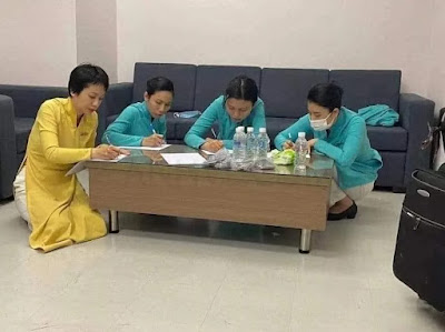 Bốn nữ tiếp viên hàng không vừa bị tạm giữ hình sự (người mặc áo vàng là Tiếp viên trưởng Nguyễn Thanh Thuỷ)