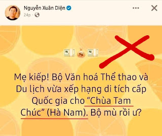 Tôi không quan tâm đến việc anh Diện đưa ra quan điểm về Chùa Tam Chúc được Bộ Văn hóa xếp hạng di tích quốc gia. Điều tôi quan tâm là phát ngôn của ông Diện là sai, thậm chí là vi phạm theo điều 331 Bộ luật Hình sự về hành vi thóa mạ cá nhân, cơ quan, tổ chức.