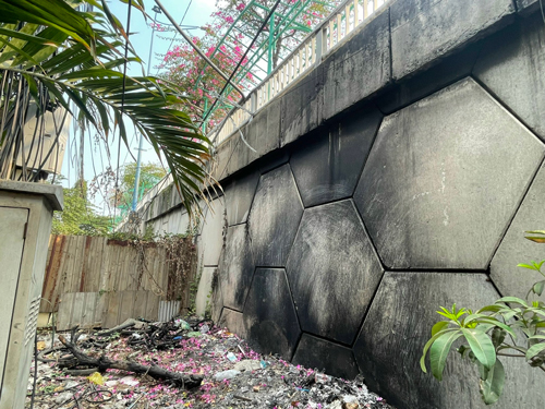 Một mảng tường dạ cầu Tham Lương (quận 12) cháy xém