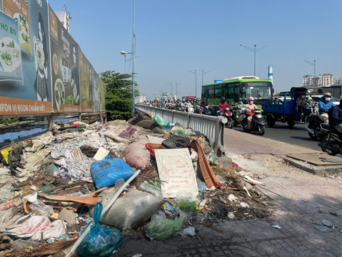 Rác bên mố cầu Tham Lương (quận Tân Phú)