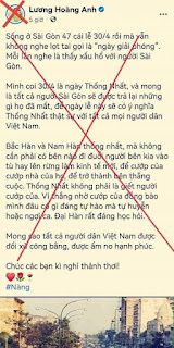 Chị Lương Hoàng Anh rất ngạo mạn nên dẫn đến sai lầm khi nói: “Bắc Hàn và Nam Hàn sẽ thống nhất, mà không cần phải có bên nào đi đuổi người bên kia vào tù hay lên rừng làm kinh tế mới, để cướp của cướp nhà của họ, để trở thành bên thắng cuộc. Thống Nhất không phải là giết người cướp của. Vì thắng nhờ cướp của đồng bào mình đâu có gì đáng tự hào mà tự huyễn hoặc ngợi ca. Đại Hàn rất đáng học hỏi”.