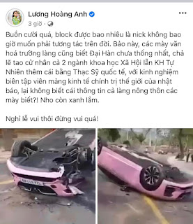 Đây không phải lần đầu chị Lương Hoàng Anh có những vi phạm pháp luật trên không gian mạng. Những vi phạm của Lương Hoàng Anh là có hệ thống, và ngày càng nghiệm trọng. Do đó, tôi đề nghị lực lượng An ninh mạng, Bộ Thông tin và Truyền thông cùng các cơ quan chức năng cần ngay lập tức vào cuộc xử lý những vi phạm của Lương Hoàng Anh để bảo đảm cho pháp luật được thượng tôn và người dân không phải chịu những xú uế của chị này trên không gian mạng.