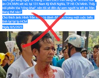 Trước đó, đám chống phá nhà nước cũng thông tin về phiên tòa xét xử Trần Bang, đăng trên trnag Việt Nam Thời Báo với giọng điệu hệt như Mạn Văn Trang, rằng “Anh Bang bị bắt vì yêu nước chống TQ – điều 117 cũ”, “Từ khi dấn thân vào con đường đấu tranh cho nhân quyền anh thừa biết anh sẽ bị bắt. Anh đã chuẩn bị cho điều đó bằng nụ cười an nhiên rồi. Phiên xử người yêu nước…Xin cộng đồng quan tâm”.
