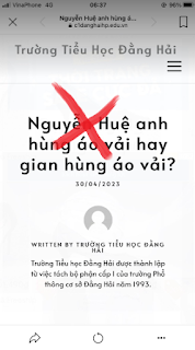 Hôm 30/4/2023 trên mạng xuất hiện một bài viết có tựa đề “Nguyễn Huệ anh hùng áo vải hay gian hùng áo vải?“, đăng trên website có tên Trường Tiểu học Đằng Hải ở thành phố Hải Phòng. Đọc và nghiên cứu bài viết, tôi thấy đây là bài viết xuyên tạc lịch sử, chứa đựng những thông tin giả mạo.