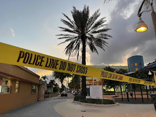 Ảnh: Cảnh sát phong tỏa khu vực xảy ra vụ nổ súng gần biển ở Hollywood, Florida, Mỹ.