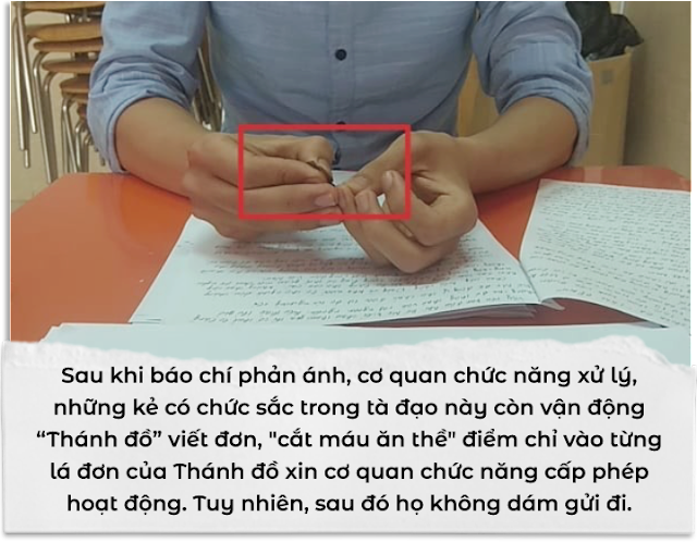 Tổ chức này còn lục lại những bài báo VTC News đăng năm 2018 về “Hội Thánh Đức Chúa Trời Mẹ”, và nói là vu khống, yêu cầu Mai cùng những người có chức vụ trong Hội viết đơn kiến nghị với Chính phủ, đồng thời cắt máu điểm chỉ.