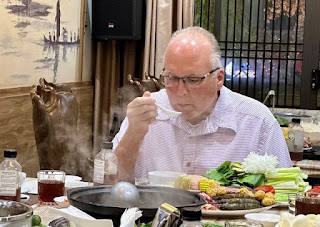 Nghị sĩ Mỹ Bill Hockstedler thưởng thức Nem tôm, lẩu tôm bầu, những món ăn dân dã của người Hà Nội