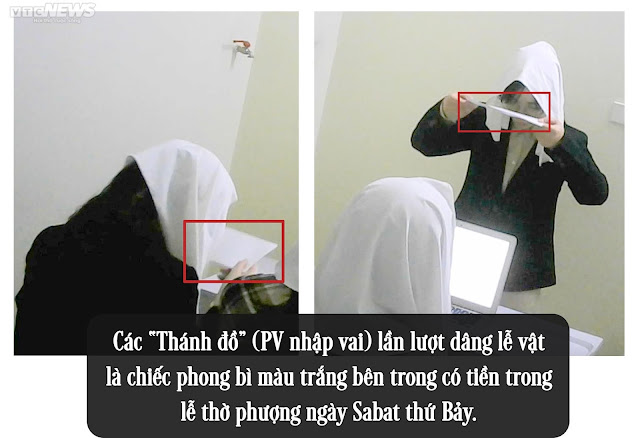 Không chỉ được rửa chân, trong Lễ Vượt qua này, tôi còn được hướng dẫn dâng lễ vật. Vợ chồng chị Thái đưa cho tôi chiếc phong bì trắng luôn có sẵn trong Sion. Góc trên cùng bên trái của chiếc phong bì trắng, tôi ký hiệu bằng dòng chữ “sam sung 2” theo hướng dẫn của chị Thái, là dấu hiệu để nhận biết lễ vật được dâng trong Lễ vượt qua lần 2.