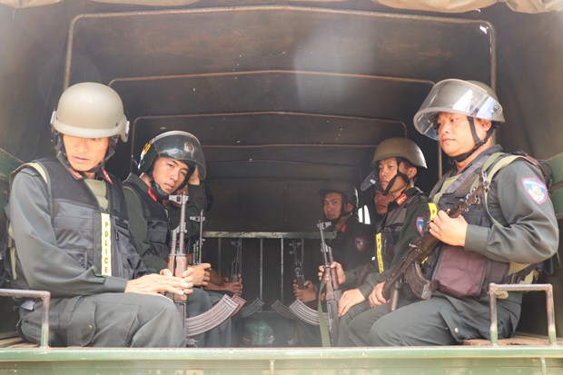 Cảnh sát Cơ động, Cảnh sát đặc nhiệm, Công an tỉnh Đắk Lắk, lực lượng đặc nhiệm Quân khu 5 phối hợp triển khai phương án vây bắt các đối. (Ảnh: Phan Anh Dũng/TTXVN)