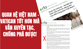 Trước nguồn tin phỏng đoán quanh chuyến thăm của Chủ tịch nước Việt Nam rằng Việt Nam đã chấp nhận cho phép tòa thánh Vatican có đại diện thường trú tại Việt Nam. Nếu đúng như vậy thì đây là một tin tốt lành trong quan hệ giữa Việt Nam và Vatican. Thế nhưng vẫn có một số kẻ xuyên tạc, lu loa rằng, “một nguyện vọng chính đáng của giáo dân Việt Nam đã bị chặn lại suốt 10 năm”; rằng, “rất có thể tiếp tục bị cộng sản ngăn cản khi tiến tới quan hệ ngoại giao toàn diện”(!) Đúng là, kiểu gì cũng bóp méo, công kích, bôi nhọ cho được!