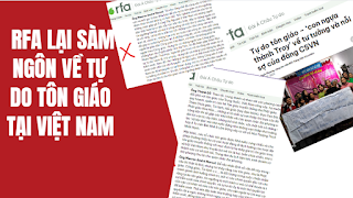 Tiêu biểu như RFA dày đặc các bài viết sặc mùi phản động, xuyên tạc sự thật về tình hình tự do tôn giáo tại Việt Nam, kiểu như “Tự do tôn giáo – ‘con ngựa thành Troy’ về tư tưởng và nỗi sợ của đảng CSVN”, mượn lời tiếng nói thiếu thiện cảm với Việt Nam là Paramita Thành Đỗ và ông Menras André Marcel để xuyên tạc lời phát biểu của Thứ trưởng Ngoại giao Việt Nam, bà Lê Thị Thu Hằng trong cuộc tiếp Đại sứ Jean Christophe Peaucelle, Cố vấn Bộ trưởng châu Âu và Ngoại giao Pháp về các vấn đề tôn giáo ngày 04/7/2023: “Việt Nam là quốc gia đa tôn giáo với khoảng 26,5 triệu tín đồ, chủ yếu là Phật giáo và Công giáo, cũng như các tín ngưỡng đa dạng, phong phú, tôn giáo giữ vai trò quan trọng trong đời sống xã hội – chính trị của Việt Nam và Nhà nước Việt Nam luôn tạo điều kiện thuận lợi để mọi người dân thực hiện quyền tự do tôn giáo, tín ngưỡng”.