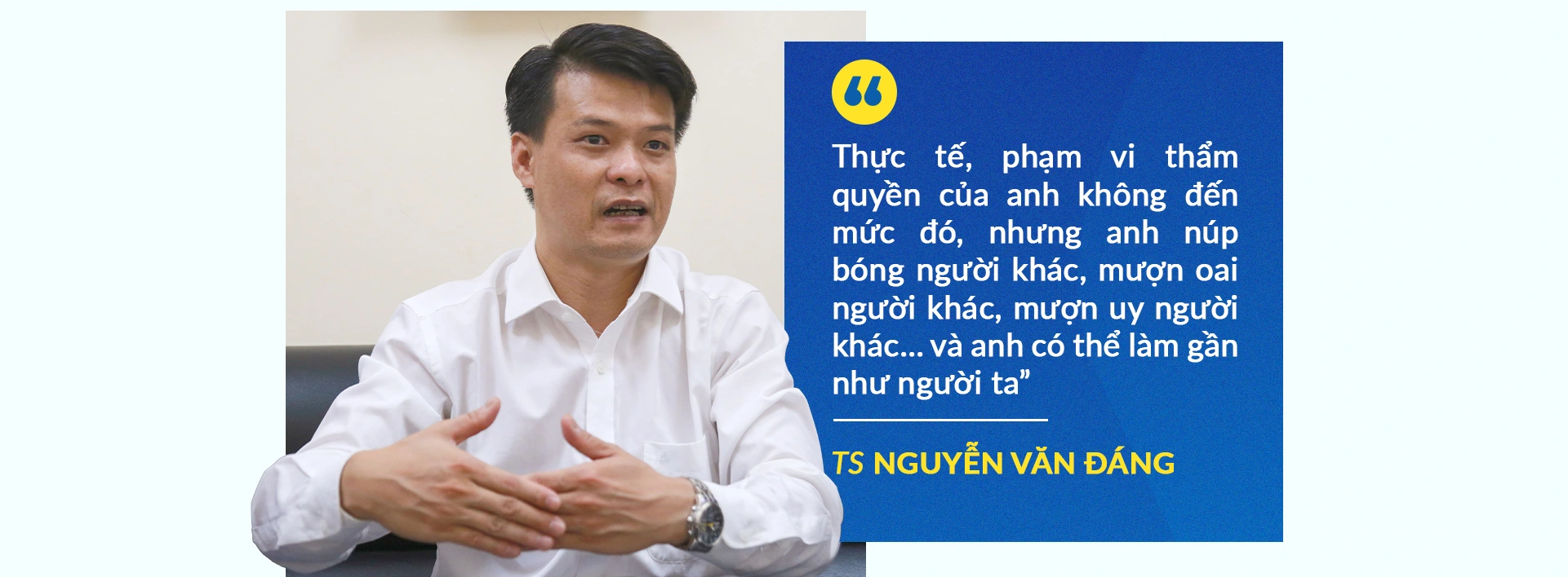 Anh không có thẩm quyền, nhưng vị trí của anh rất gần gũi với người có thẩm quyền cho nên anh có thể vay mượn của người ta để làm việc nào đó cho người khác và người làm việc với anh lại luôn nghĩ rằng, anh là đại diện cho người có quyền lực kia, thậm chí là hiện thân của người kia”, TS. Đáng nêu quan điểm.