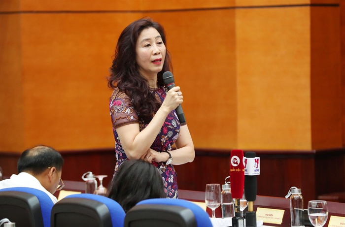 Cục trưởng Cục Di sản Văn hoá Lê Thị Thu Hiền thông tin về lộ trình hồi hương ấn vàng “Hoàng đế chi bảo”. Ảnh: Trần Huấn.