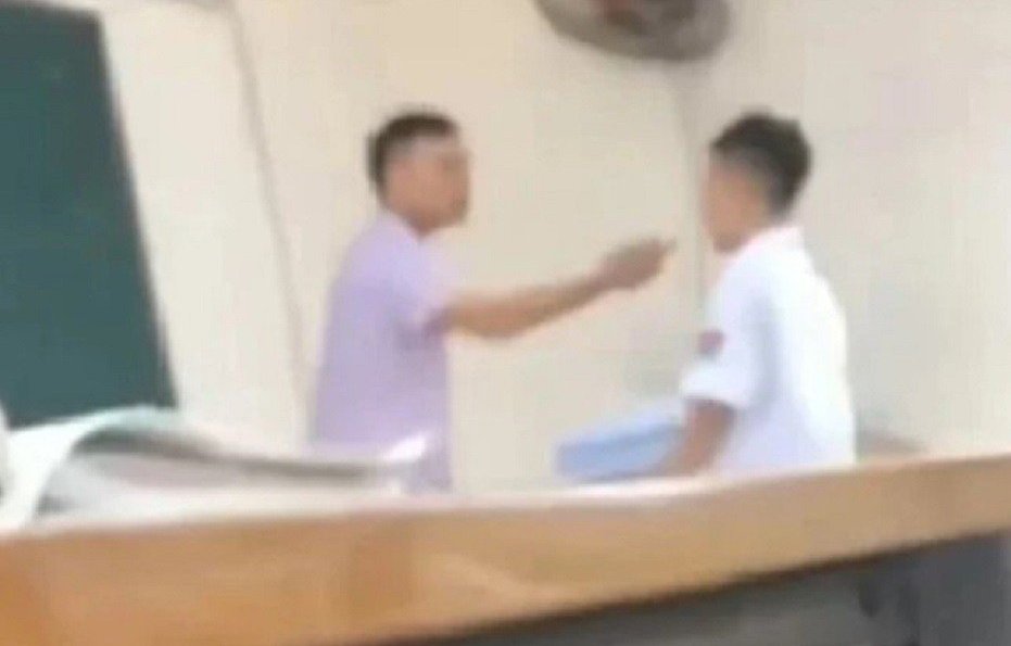 Trước đó, tối 1/10, mạng xã hội lan truyền đoạn clip dài hơn 20 giây ghi lại cảnh thầy giáo đứng trên bục giảng, bóp cằm, chỉ tay vào mặt và liên tiếp mắng chửi nam sinh với ngôn ngữ xúc phạm, chợ búa, thậm chí xưng “mày – tao” và còn chửi học sinh là “con chó”.