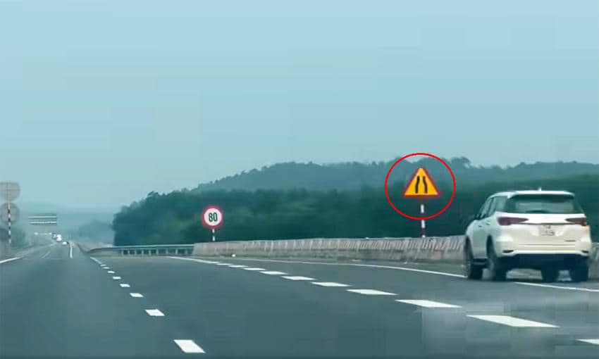 Thậm chí, khi tới đoạn phình ra lại có biển báo đoạn này dài bao nhiêu mét, gần hết đoạn đấy lại có biển báo rộng mấy chục m2 báo là đã hết chỗ cho vượt.