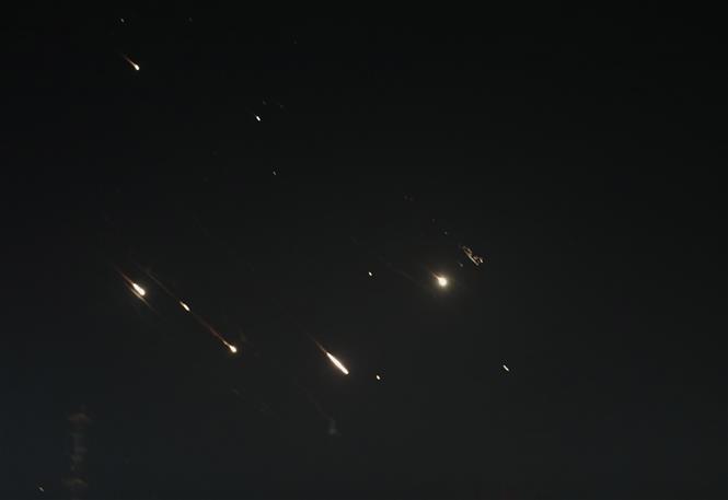Hệ thống phòng không Israel đánh chặn vụ tấn công bằng tên lửa nhằm vào Jerusalem ngày 14/4/2024. Ảnh: THX/TTXVN