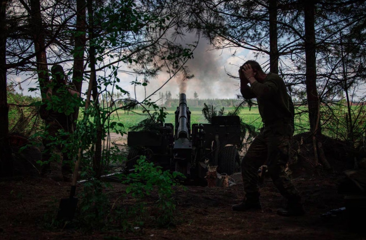 Binh lính Ukraine khai hỏa gần Vovchansk thuộc khu vực Kharkov. Ảnh: Getty
