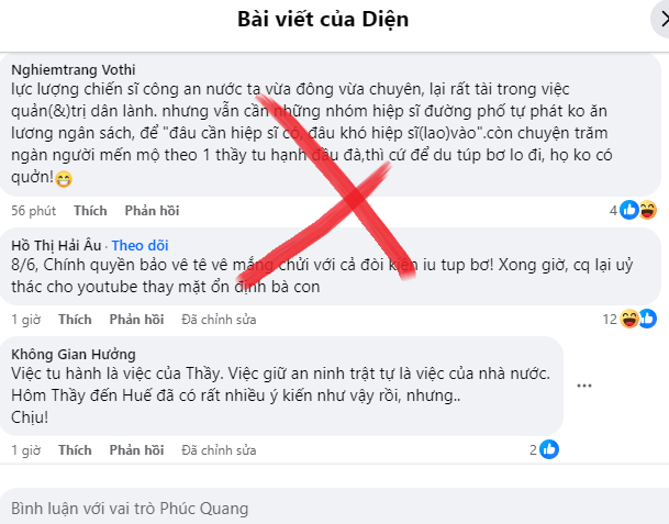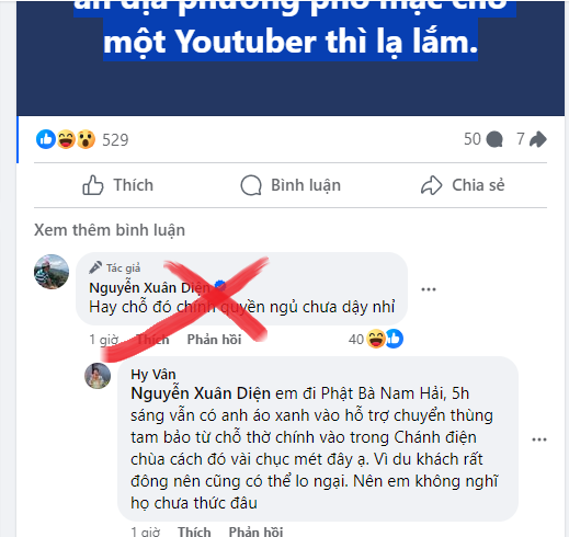 Nguyễn Xuân Diện cho rằng chính quyền và công an địa phương phó mặc an ninh trật tự cho một Youtuber là điều “lạ lắm”. Tuy nhiên, chính quyền không thể lúc nào cũng đi theo và bảo vệ từng cá nhân, dù là người tu hành hay không. Nhiệm vụ của lực lượng công an và chính quyền rất nặng nề và nhân lực mỏng, không thể dồn hết mọi nguồn lực chỉ để đi theo một người, trong khi người này không thuộc diện cảnh vệ theo luật.