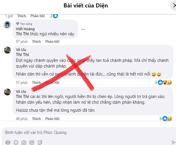 Cách đây 1 giờ đồng hồ, Nguyễn Xuân Diện đăng một status có nội dung kích động như sau: “Việc nhắc nhở giữ trật tự an ninh một khu vực hàng ngàn người mà chính quyền và công an địa phương phó mặc cho một Youtuber thì lạ lắm“. Status của Nguyễn Xuân Diện khơi mào cho những kẻ chống phá nhà nước lao vào chửi bới, đá xéo chế độ. Mời xem loạt ảnh chụp màn hình status của Nguyễn Xuân Diện: