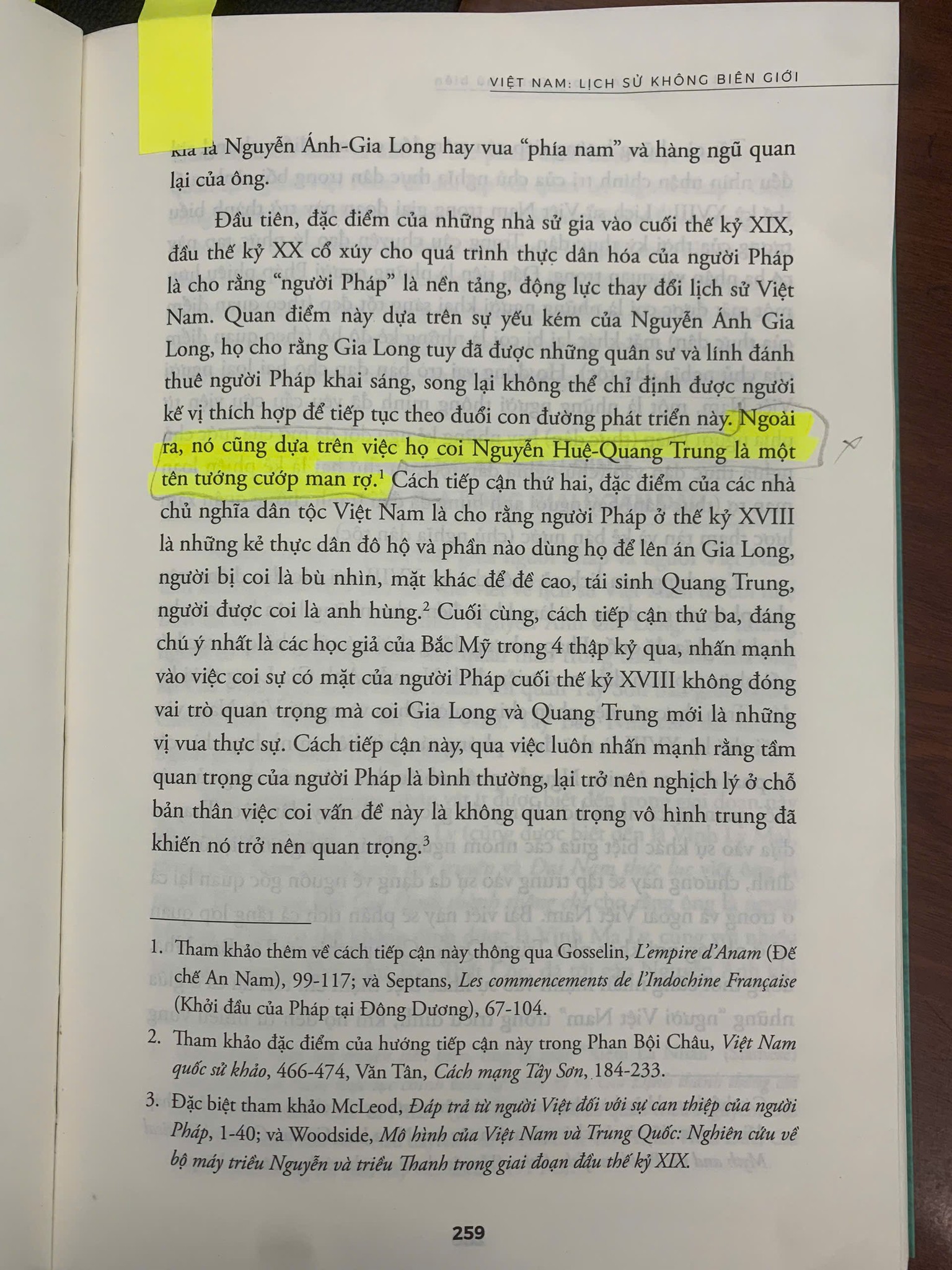 + “Ngoài ra, nó cũng dựa trên việc họ coi Nguyễn Huệ-Quang Trung là một tên tướng cướp man rợ” (tr. 259).
